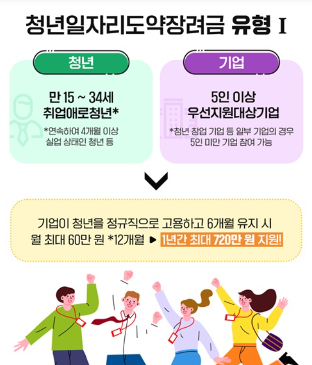 청년일자리도약장려금은 말 그대로 청년의 일자리를 도약시킬 수 있도록 정부가 기업에게 장려금을 지급하는 제도입니다.